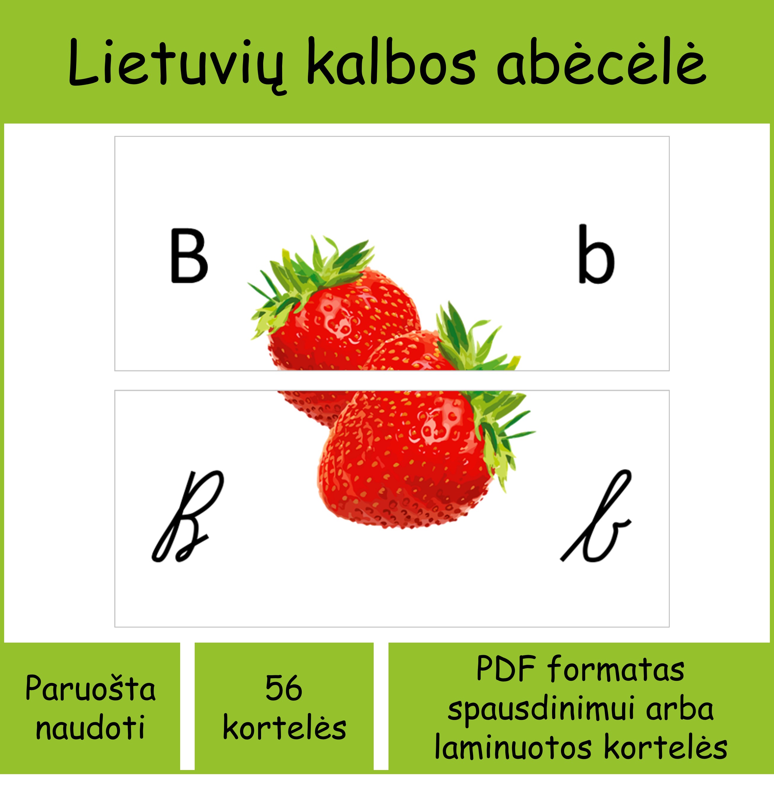 Ši mokymo priemonė skirta vaikams susipažinti su lietuvių kalbos abėcėlės spausdintinėmis ir rašytinėmis raidėmis, mokytis jas atpažinti, palyginti ir susieti tarpusavyje. Užduotys pateikiamos poravimo principu, kuris padeda vaikams mokytis aktyviai ir per veiksmą.